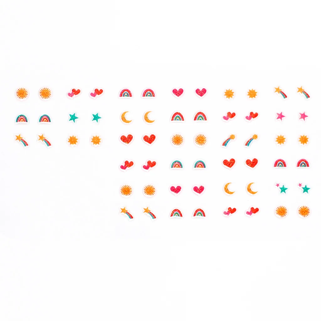 Et farverigt og sjovt sæt klistermærke‑øreringe til børn, inspireret af det populære Cosmic Love-design fra Rex London. Sættet indeholder hele 30 par, hver med sit eget motiv – hjerter, stjerner, måner, regnbuer og andre kosmiske symboler. Perfekt til leg, udklædning, fest eller bare som en lille hverdagsforkælelse.