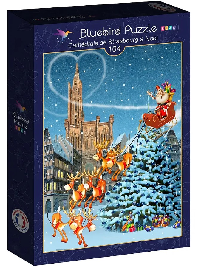 Skab hygge i december med dette skønne julepuslespil med motiv af julemanden og hans rensdyr, der flyver henover den smukke Strasbourg Katedral. Puslespillet er illustreret af den franske kunstner Ruyer Francois, som er elsket for sine humoristiske og farverige motiver, hvor sjove detaljer gemmer sig overalt.