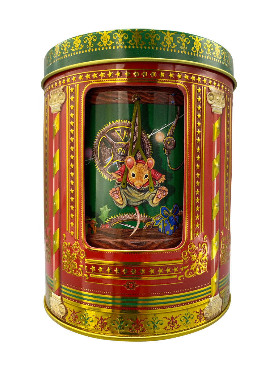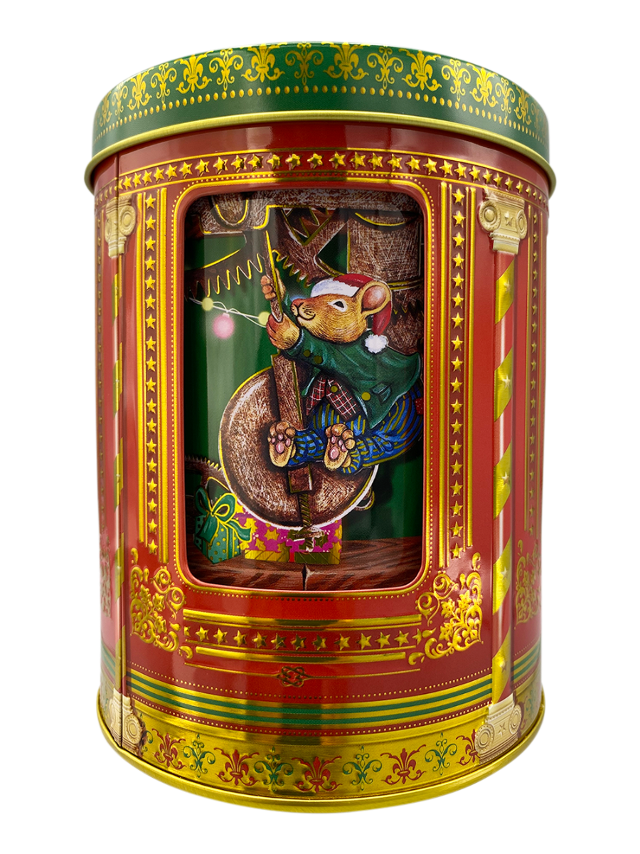 Oplev den fortryllende Julemus Karrusel Spille Kagedåse fra Silver Crane – en charmerende metalæske med søde julemus under misteltenen, klar til fest. Med mekanisk optræk i bunden drejer indersiden rundt til julesange, mens du opbevarer op til 750 ml småkager. En dekorativ og musikalsk gaveæske, der bringer smil og stemning til hjemmet.