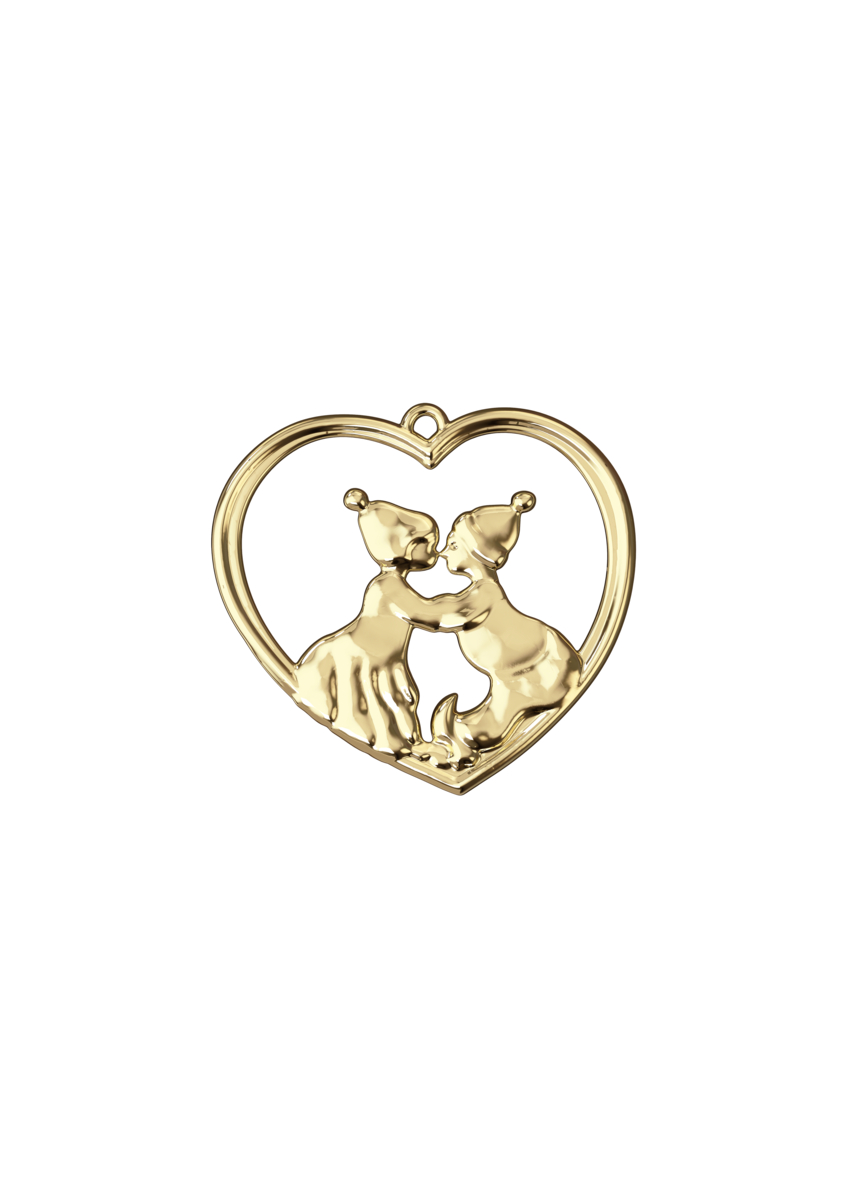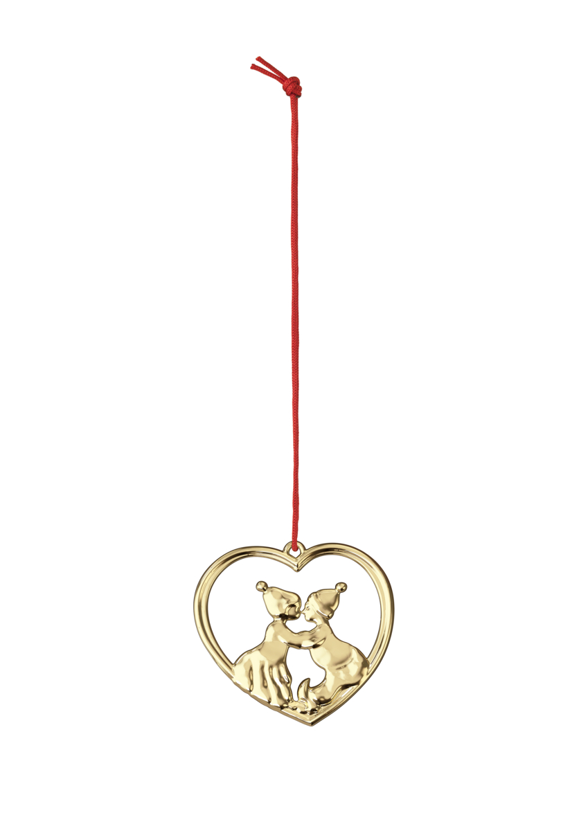 ✨ Nyhed i 2025-kollektionen: Det forgyldte hjerte med to kyssende nisser – et poetisk og svævende ophæng, der indfanger julens kærlige nærvær og de varme følelser, vi deler med dem, vi holder af. Med sit fine udtryk og ikoniske motiv bliver det hurtigt en favorit i både vinduet og på juletræet.