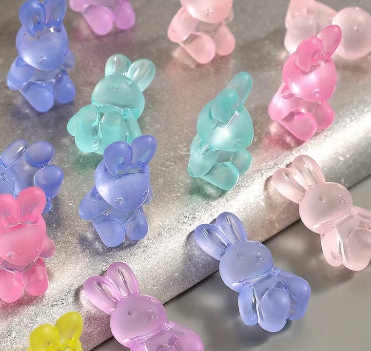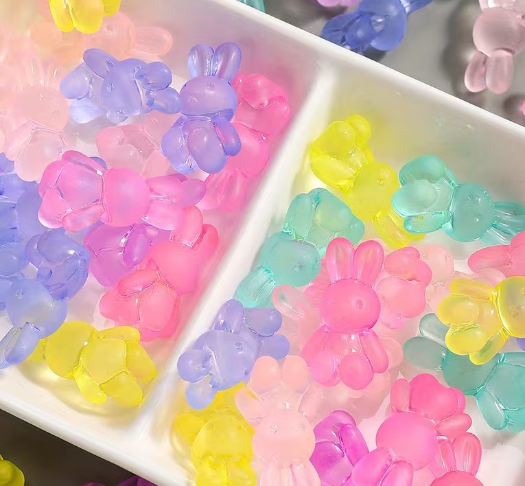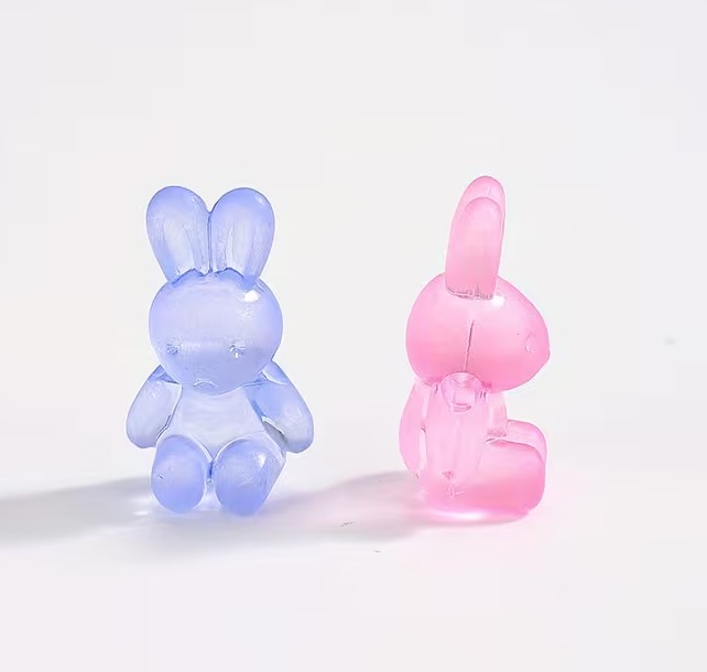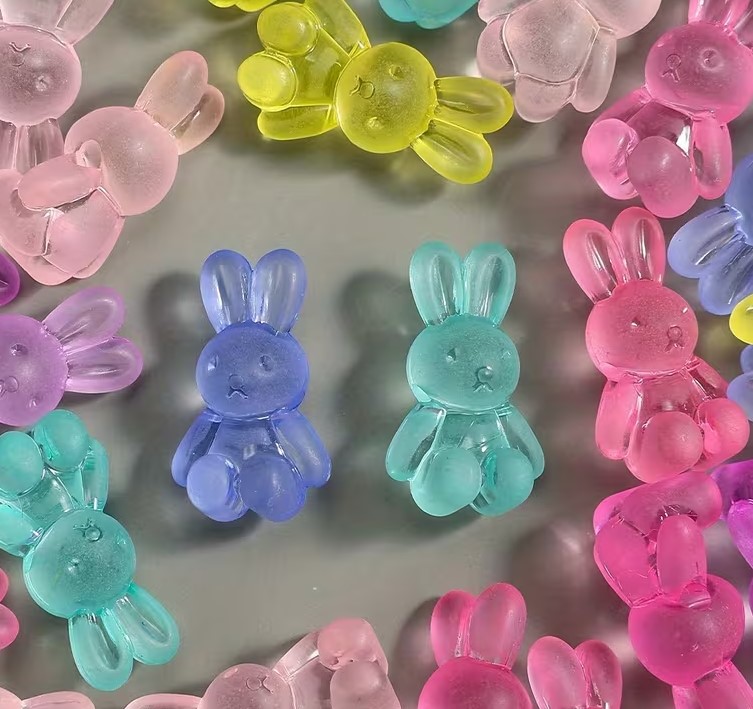 Små dekorative kaniner i akryl – assorterede pastelfarver (1,4 × 2,4 cm)