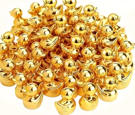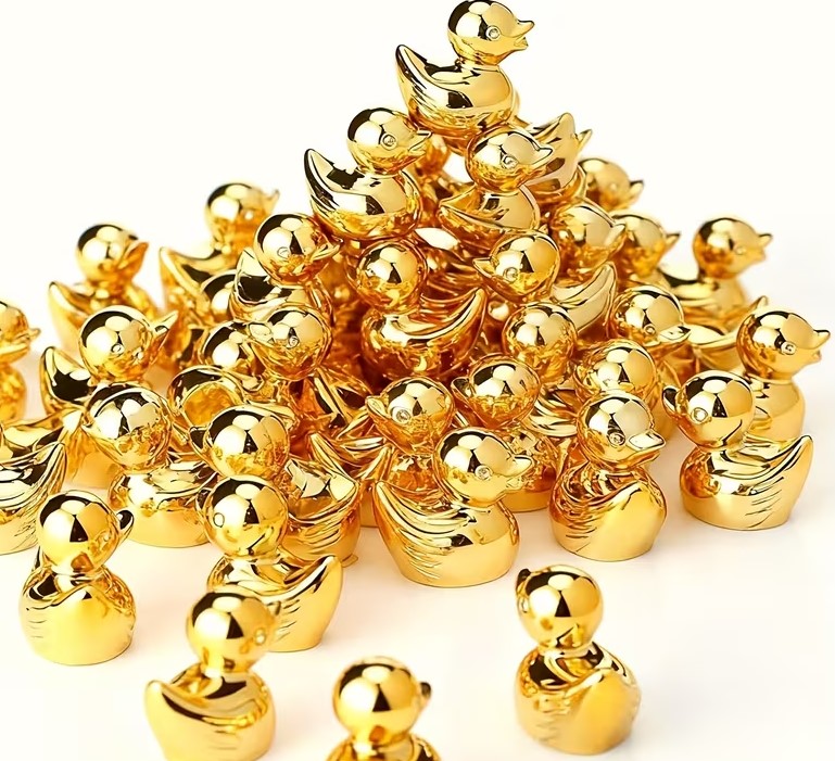 Miniænder i resin – skinnende guldlook (1,35 × 1,5 cm)