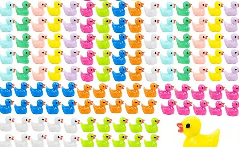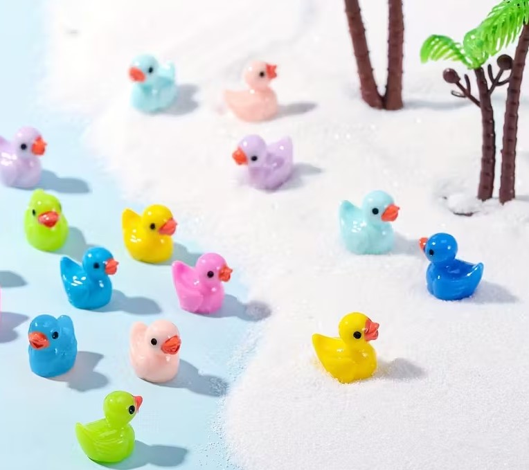 Miniænder i klare farver – resin (1,2 × 1,7 cm), assorteret